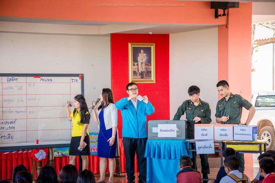 วันที่ 1 กุมภาพันธ์ 2562 เวลา 08.00 น. - 15.00 น. โรงเรียนวังกระแสวิทยาคมได้จัดการเลือกตั้งประธานนักเรียนปีการศึกษา 2562 เพื่อได้สานต่องานที่ ประธานนักเรียนปีการศึกษา 2561 ได้ทำไว้ ในการเลือกตั้งครั้งนี้ มีผู้สมัครจำนวน 3 พรรค ผู้ที่ได้รับเลือกให้เป็นประธานนักเรียน คือ เบอร์ 2 นายบูรพา ปาวัน โรงเรียนวังกระแสวิทยาคมขอแสดงความยินดีกับประธานนักเรียนคนใหม่ด้วยครับ S:0