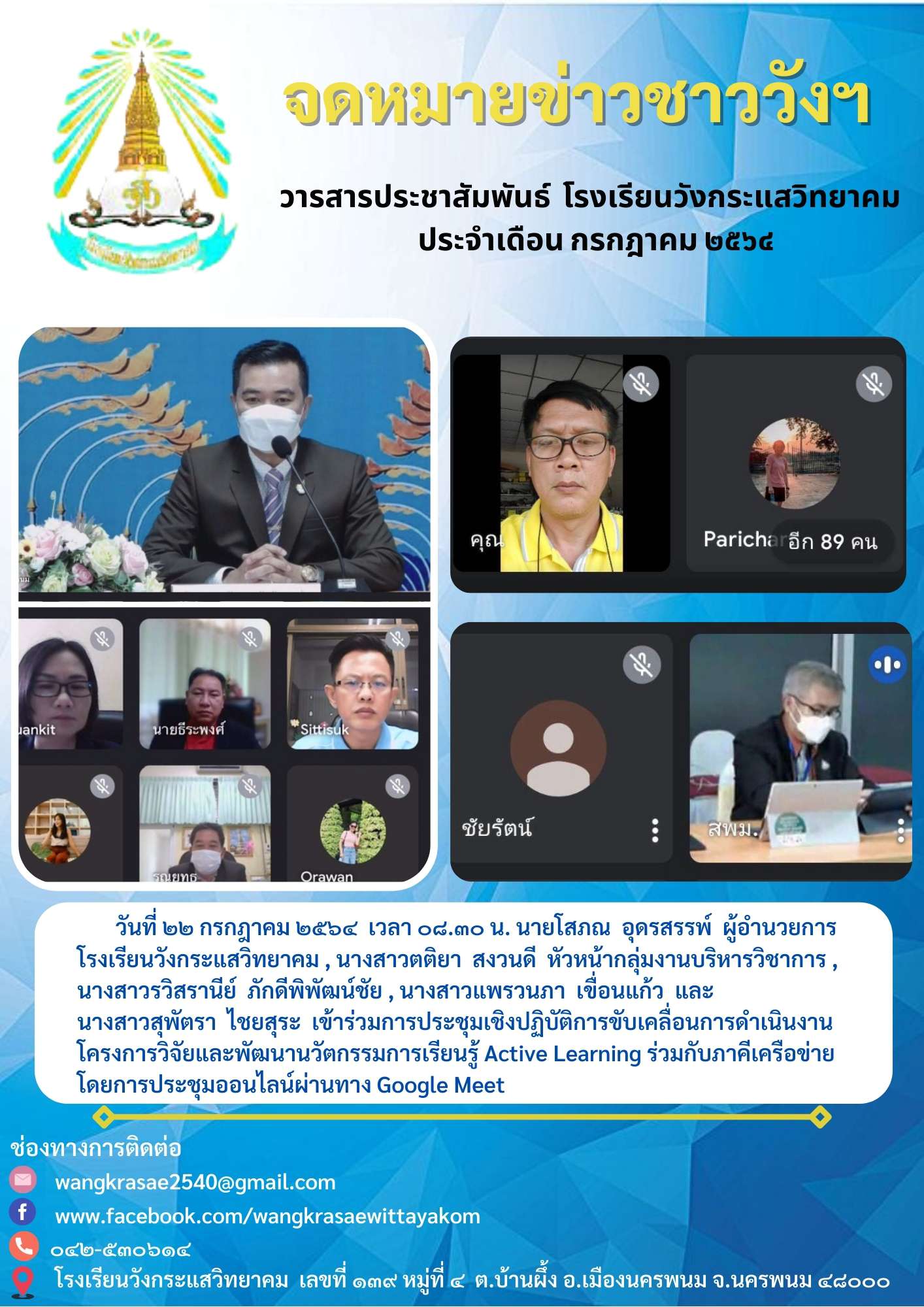 ประชุมออนไลน์เชิงปฏิบัติการการขับเคลื่อนการดำเนินงานโครงการวิจัยและพัฒนานวัตกรรมการเรียนรู้ Active Learning ฯ