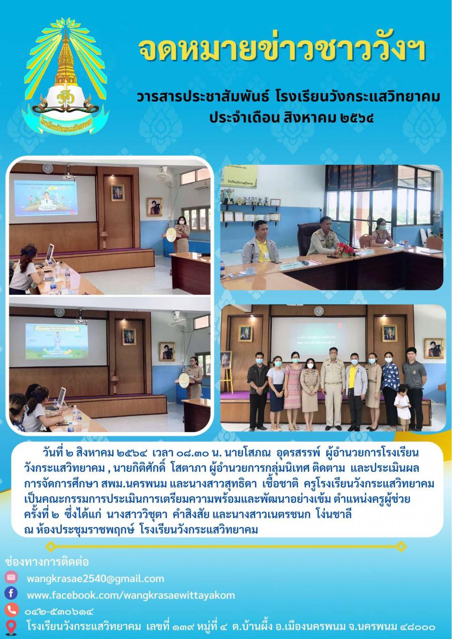 ประเมินการเตรียมความพร้อมและพัฒนาอย่างเข้ม ตำแหน่งครูผู้ช่วย ของ นางสาววิชุตา คำสิงสัย และ นางสาวเนตรชนก โง่นชาลี