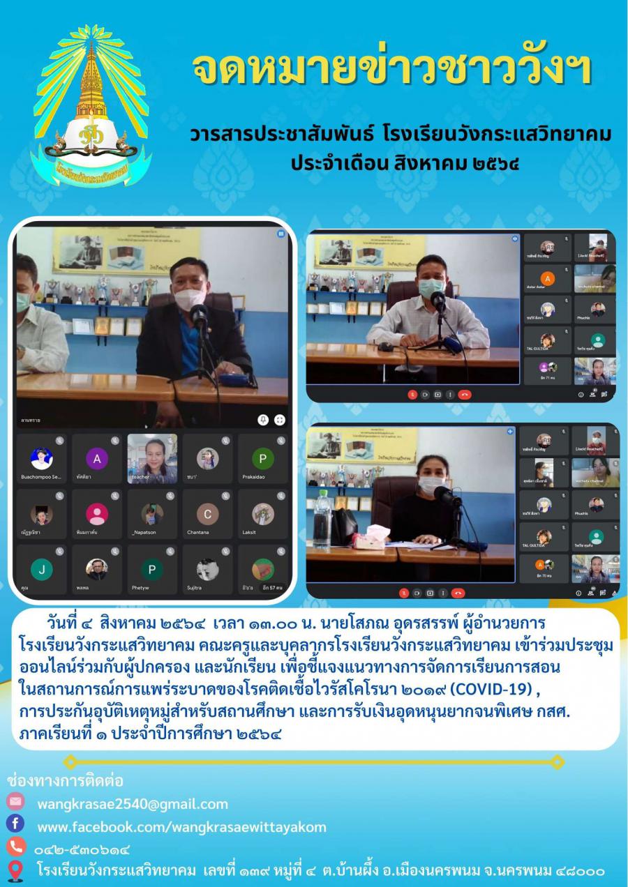 การปรระชุมออนไลน์ร่วมกับผู้ปกครองและนักเรียน โรงเรียนวังกระแสวิทยาคม ครั้งที่ 1/2564