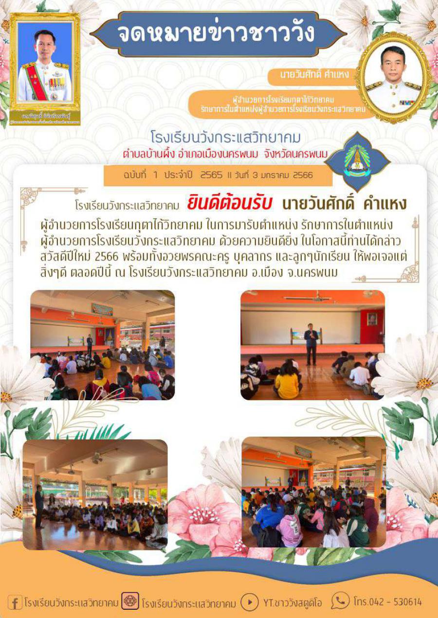 นดีต้อนรับ นายวันศักดิ์ คำแหง ผู้อำนวยการโรงเรียนกุตาไก้วิทยาคม ในการมารับตำแหน่ง รักษาการในตำแหน่ง ผู้อำนวยการโรงเรียนวังกระแสวิทยาคม
