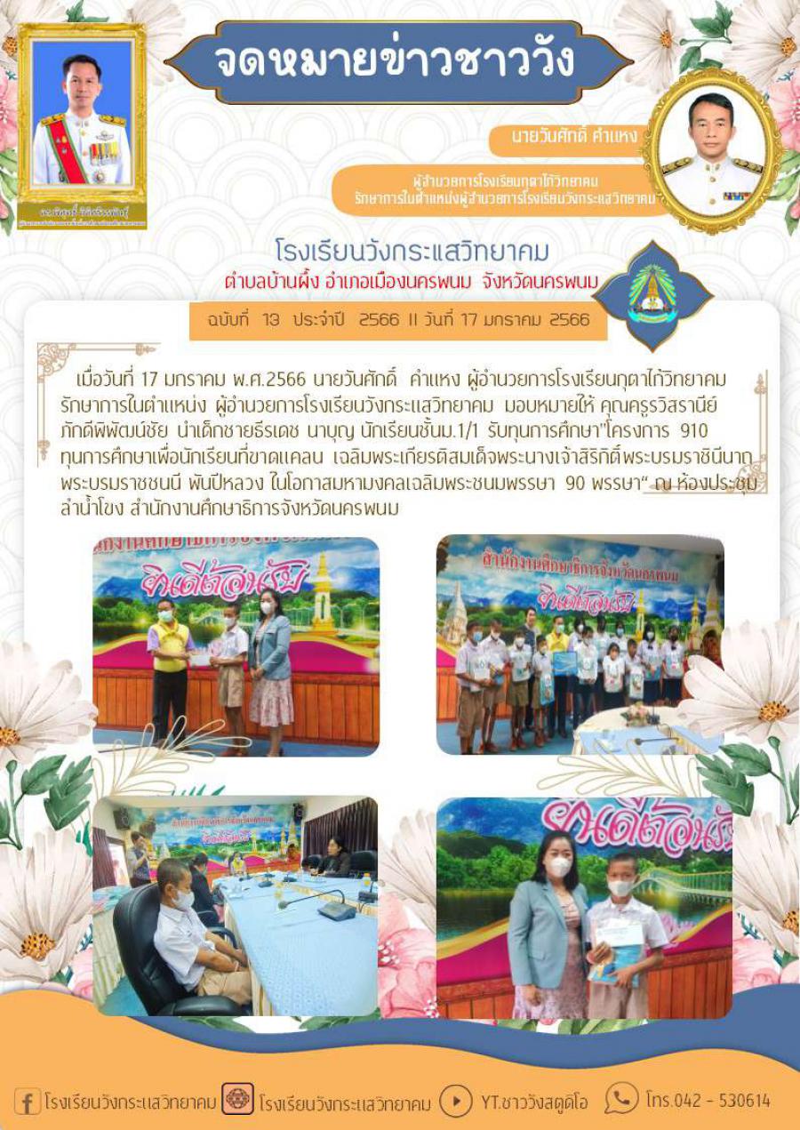 นำเด็กชายธีรเดช นาบุญ นักเรียนชั้นม.1/1 รับทุนการศึกษา